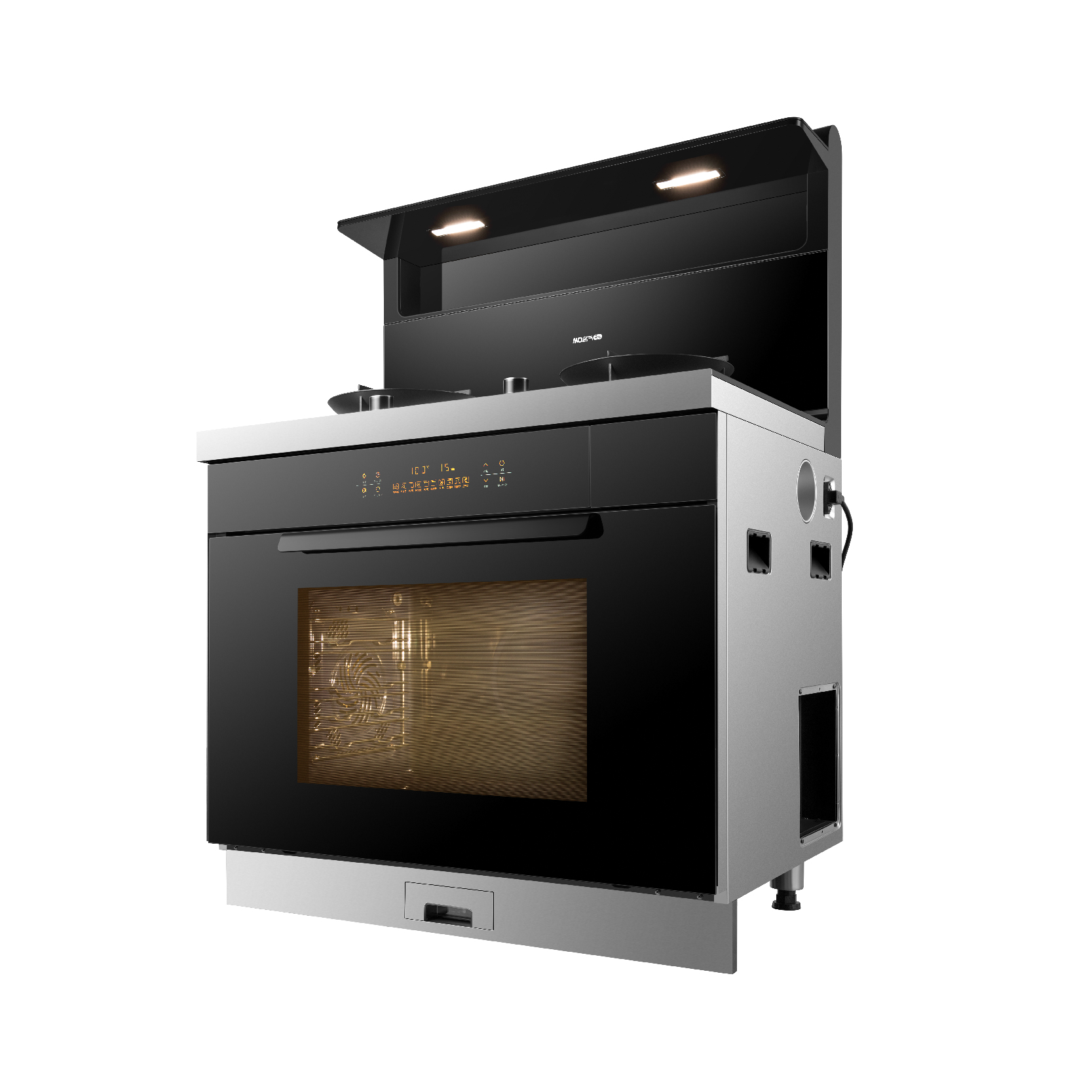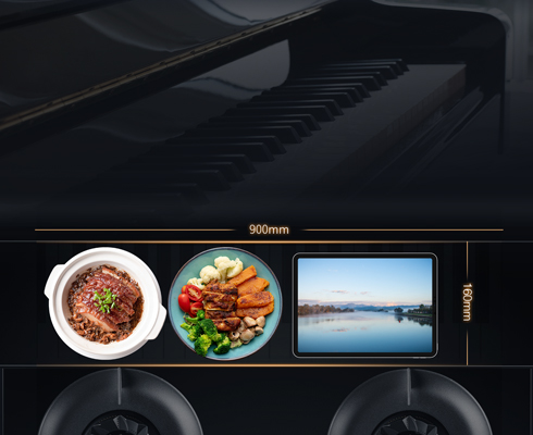 老板电器国家级工业设计中心 亮黑色钢琴漆面置物台,搭配跑道圆侧翼 优雅与速度的完美融合,诠释厨房非凡意义