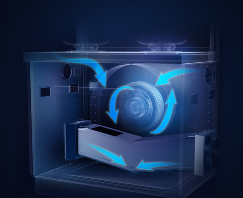 智能直流变频电机以2000转/min高速测算,自动感应烟道阻力,精准调节电机动力,时刻保持恒定有效排烟。