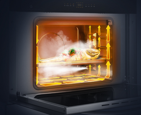 直喷100℃蒸汽,配合温场与循环,食物表面不湿塌;底部无冷凝,内胆清洁久如新;循环新鲜蒸汽,还原食材本味