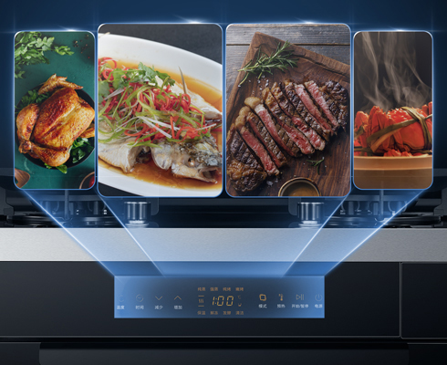 油烟机+燃气灶+蒸箱+烤箱+电饭煲+置物架+发酵机+保温机,八合一多种烹饪需求,提升空间利用率,为厨房生活赋能