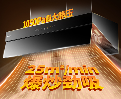 自动挡烟屏能够有效锁住油烟,防止其外溢,配合风道超大吸力,解决厨房油烟问题。