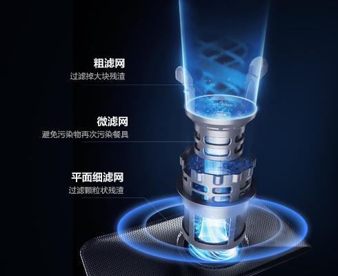 洗碗时,三重层层过滤,食物残渣没有机会进入水路管道,水管不堵塞,洗碗超省心。