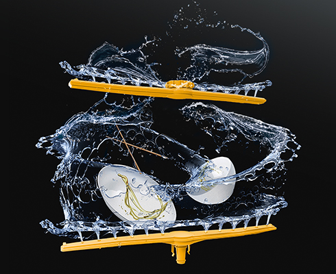 45cm加长定制喷淋臂,25个定制喷淋孔,20个不同出水角度双龙卷双旋喷淋,深入餐具内部,碗篮和餐具的边角都不放过。