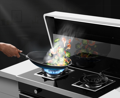 独特几何穿插构架,不锈钢材质机头,为集成灶注入艺术灵感。采用不粘油涂层,时刻保持烟机洁净。