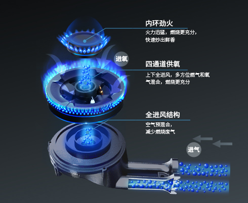 立体进风结构,多方位空气补给,与燃气充分混合充分燃烧,火力迅猛稳定。