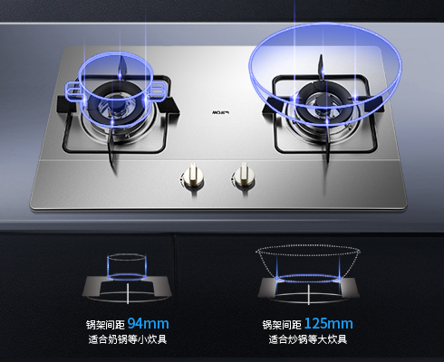 大小两种锅架尺寸,满足各类炊具使用,无需小奶锅架,不再担心丢失。