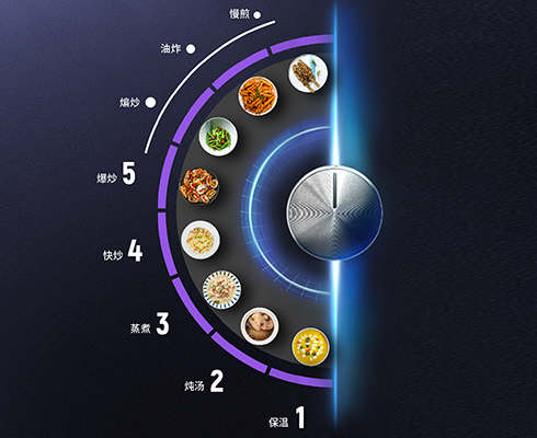 0.38~4.6KW八段火力定档调节,蒸炒煮煎炸精准操控,烹饪随心所欲。